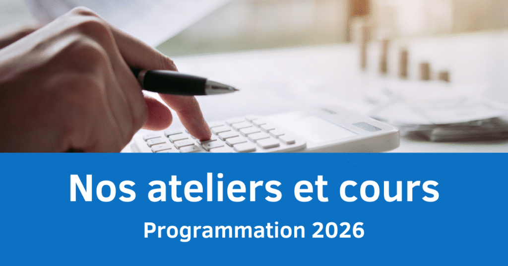 Programmation Hiver/Printemps 2026 Notre programmation d’ateliers pour l’hiver/printemps 2026 est disponible ! Nos ateliers sont offerts par notre équipe composée de conseillers budgétaires. Ils vous